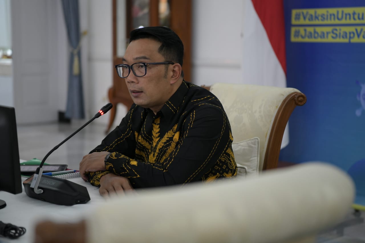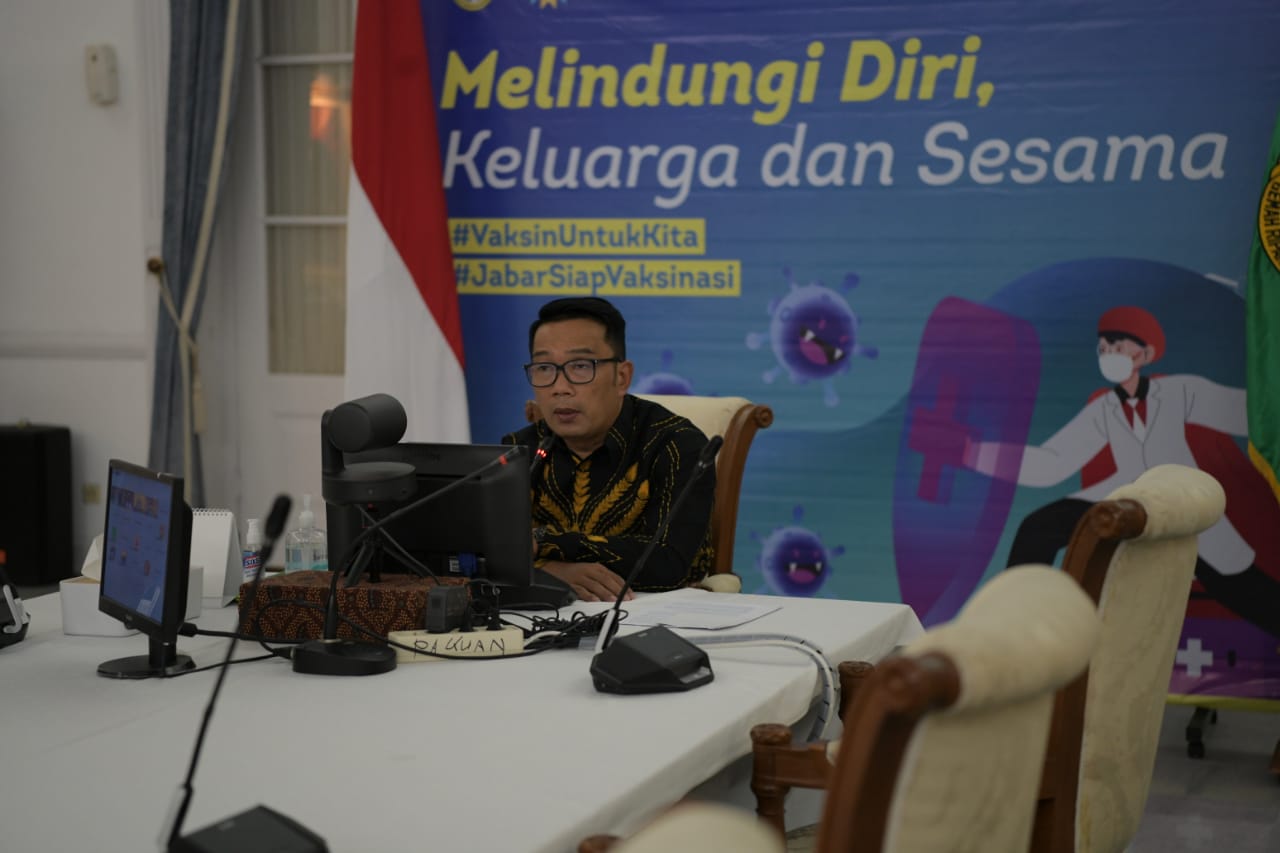 Gubernur Jawa Barat Ridwan Kamil saat Talk Show BNPB “Kesiapan Pemda Menghadapi Larangan Mudik” dari Gedung Pakuan, Kota Bandung, Rabu (5/5/2021). (Foto: Yogi P/Biro Adpim Jabar)