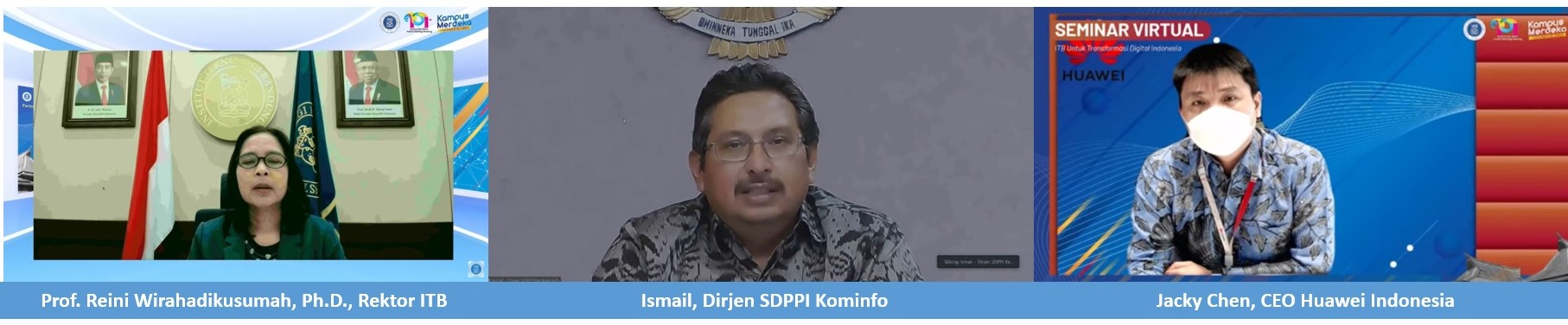 Dukungan Huawei Indonesia untuk terus memperkuat kerja sama mendapat sambutan yang positif dari ITB. Sambutan positif tersebut disampaikan pada saat berlangsungnya webinar dalam rangka dies natalis ke-101 bertema ITB for Digital Transformation of Indonesia yang juga menghadirkan Kepala Badan Riset dan Inovasi Nasional Dr. Laksana Tri Handoko, M.Sc.; Dirjen Sumber Daya dan Perangkat Pos dan Informatika (SDPPI) Kementerian Komunikaasi dan Informatika (Kominfo) Ismail; serta Deputi Sarana dan Prasarana Kementerian PPN/Bappenas Ir. Josaphat Rizal Primana, Msc; sebagai pembicara utama.