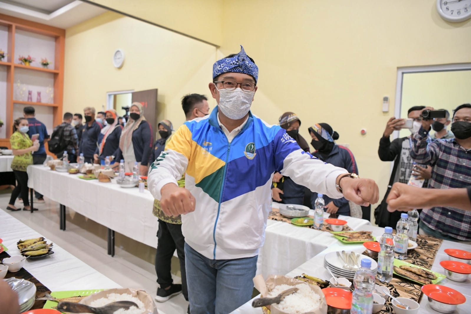 Gubernur Jawa Barat Ridwan Kamil saat menemui Kontingen PON Jabar di Rumah Makan Sendok Garpu Jayapura, Jumat (15/10/2021). (Foto: Pipin Sauri/Biro Adpim Jabar)