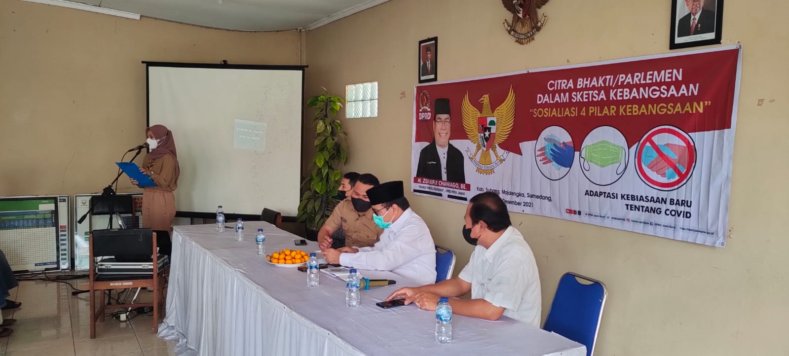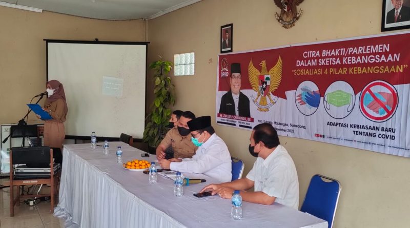 Terasjabar.co – Anggota Dewan Perwakilan Rakyat Daerah (DPRD) Provinsi Jawa Barat dari daerah pemilihan (Dapil) Jabar XI (Kabupaten Sumedang, Kabupaten Majalengka dan Kabupaten Subang atau SMS), H. Zulkifly Chaniago, BE. mensosialisasikan Empat Pilar Kebangsaan dalam rangka Citra Bhakti/Parlemen dalam Sketsa Kebangsaan di Desa Cibeusi, Kecamatan Jatinangor, Kabupaten Sumedang, Senin (13/12/2021).