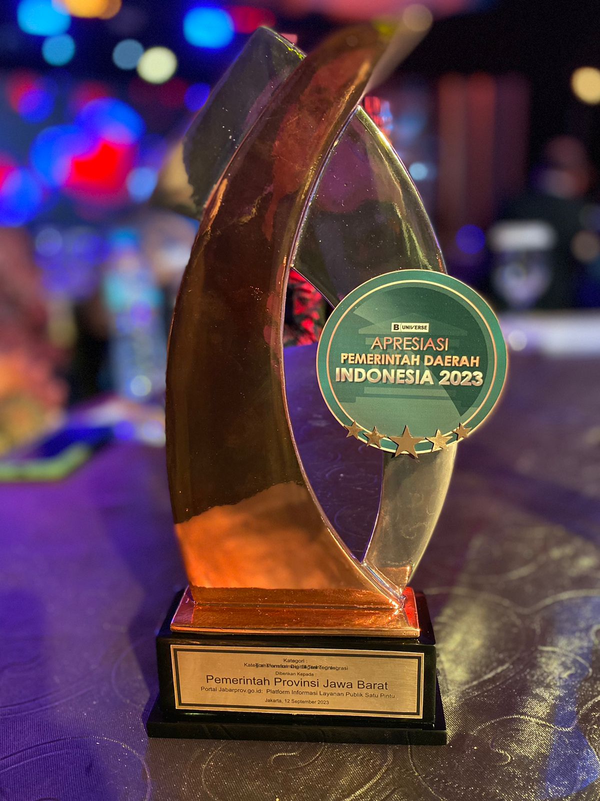 Penghargaan itu diterima Kepala Sub Bagian Tata Usaha UPTD Pusat Layanan Digital, Data dan Informasi Geospasial Dinas Komunikasi dan Informatika Provinsi Jabar, Gustiman, di Hotel JS Luwansa, Jakarta, Selasa (12/09/2023) malam.
