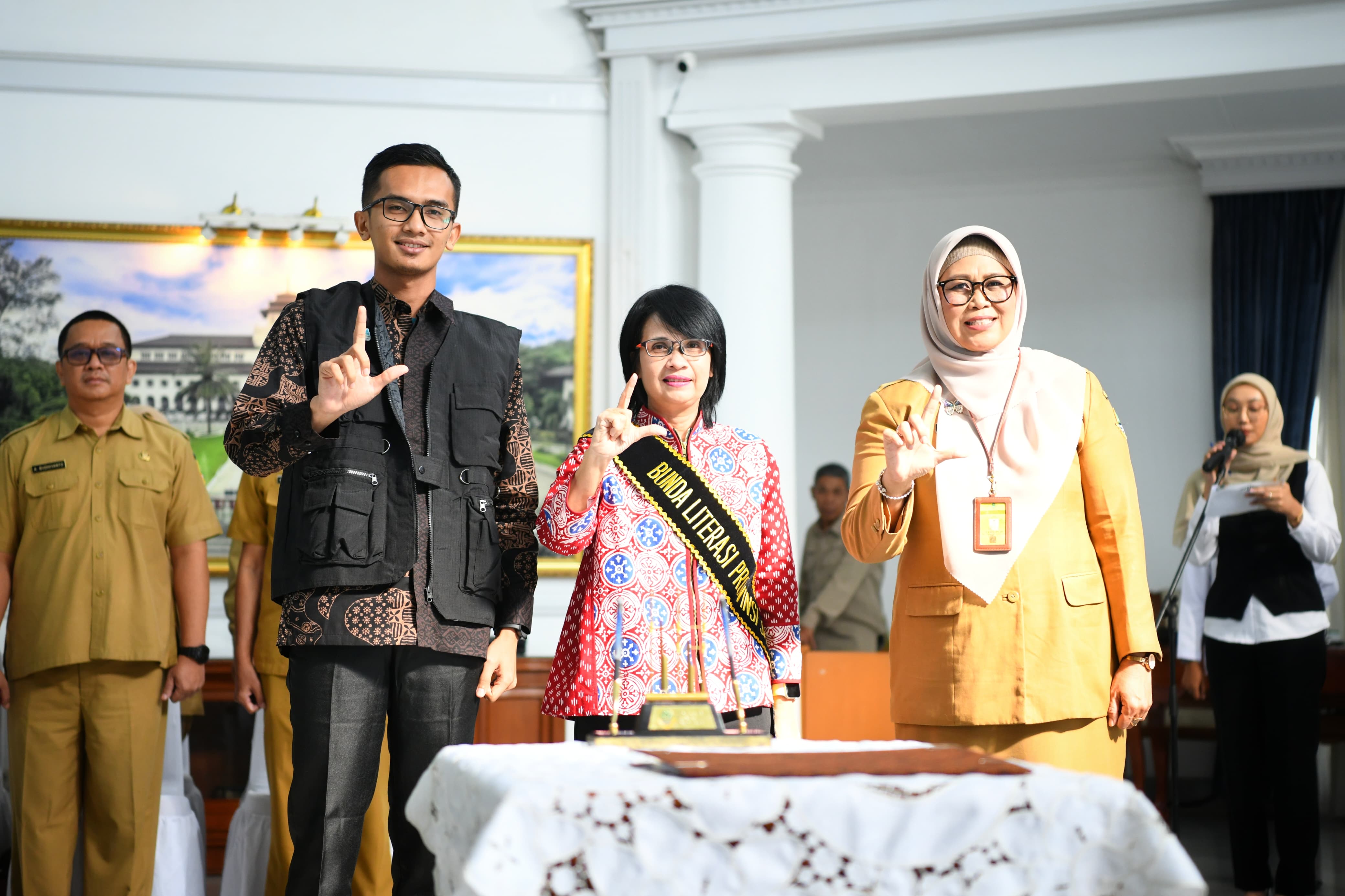 Pengukuhan dilaksanakan oleh Kepala Dinas Perpustakaan dan Kearsipan Daerah (Dispusipda) Provinsi Jabar Kim Agung dan disaksikan Bunda Literasi Jabar Amanda Soemedi Bey Machmudin.