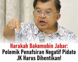 Terasjabar.co – Polemik yang berkembang di tengah masyarakat terkait penafsiran pidato Jusuf Kalla di Universitas Gadjah Mada (UGM) mendapat tanggapan dari Harakah Badan Koordinasi Mubaligh Indonesia Jawa Barat (Harakah Bakomubin Jabar).